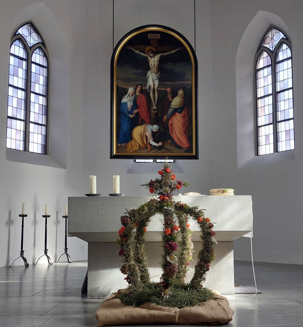 Unsere Pfarrgemeinde konnte sich am Erntedank-Sonntag, am 22.09.2024, an einer prachtvollen, von den Bäuerinnen geschmückten Kirche erfreuen. Sie gestalteten mit Texten und Liedern den festlichen Gottesdienst, welcher mit dem Motto „Es ist Zeit“ ganz im Zeichen von „Danke zu sagen“ stand. Anschließend wurde die Pfarrgemeinde bei einer wunderbaren Agape von den Bäuerinnen verköstigt.